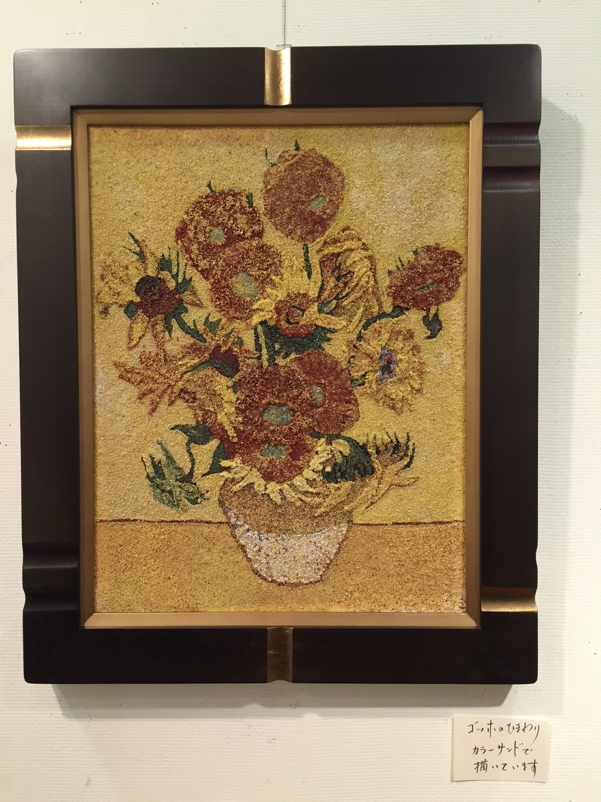 点画に近い感覚でしょうか? 27色のカラーサンドをキャンバスに重ねていきます。
