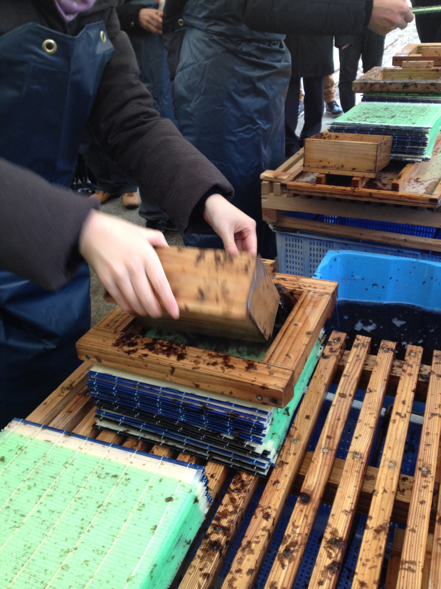 午後は出水で、海苔で手漉き体験です。
