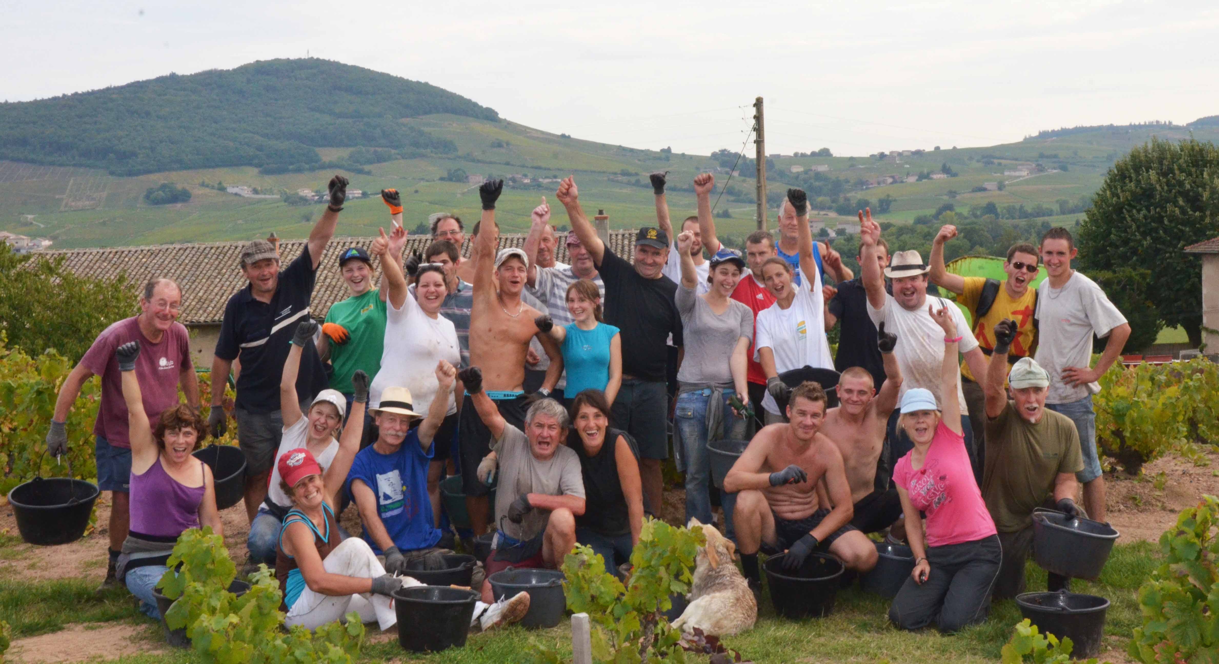 32人の収穫人たちがブドウを摘みとります。今年も最高のチームでした!
