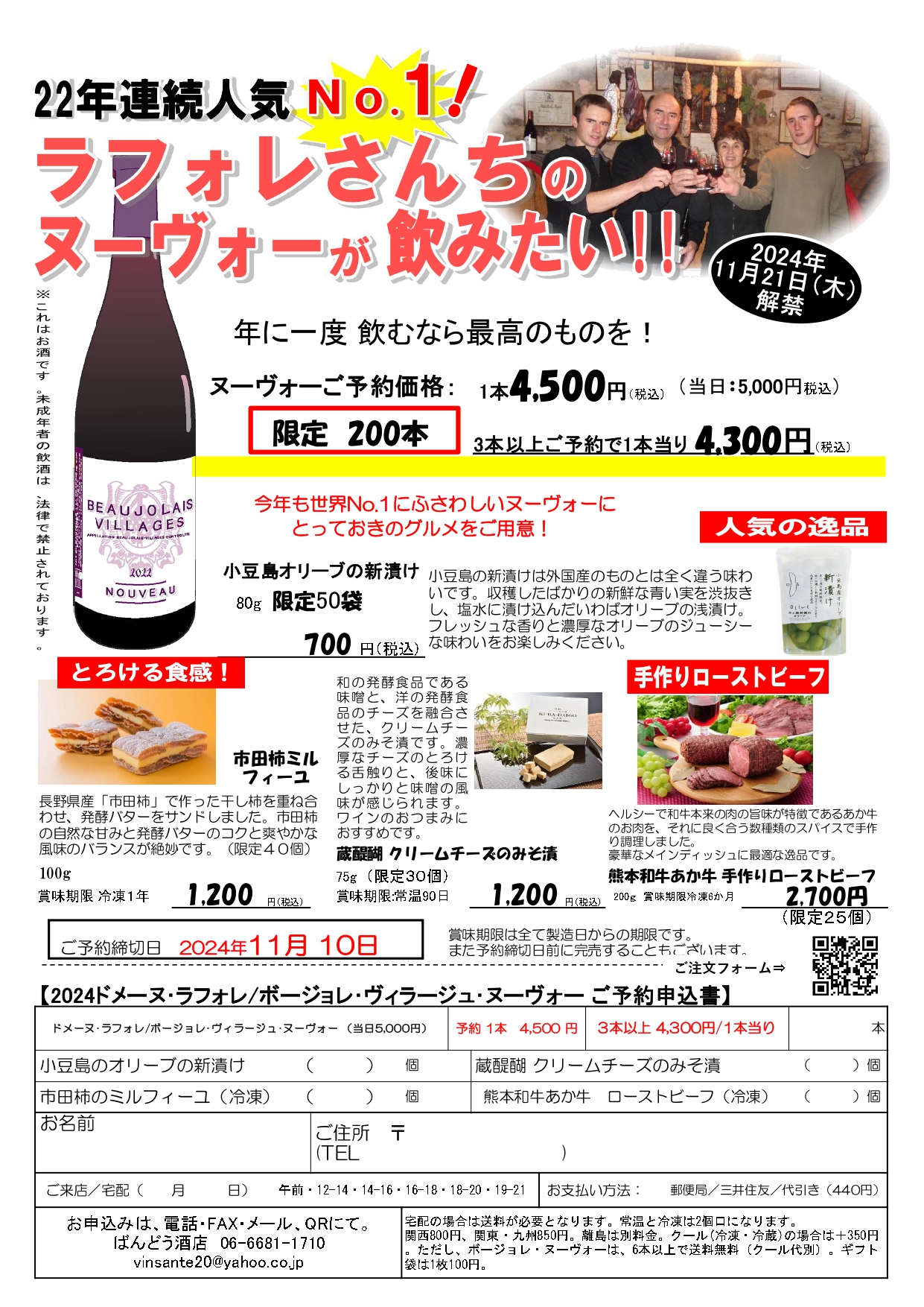 2024年ラフォレさんのボージョレ・ヌーヴォご予約フォーム
