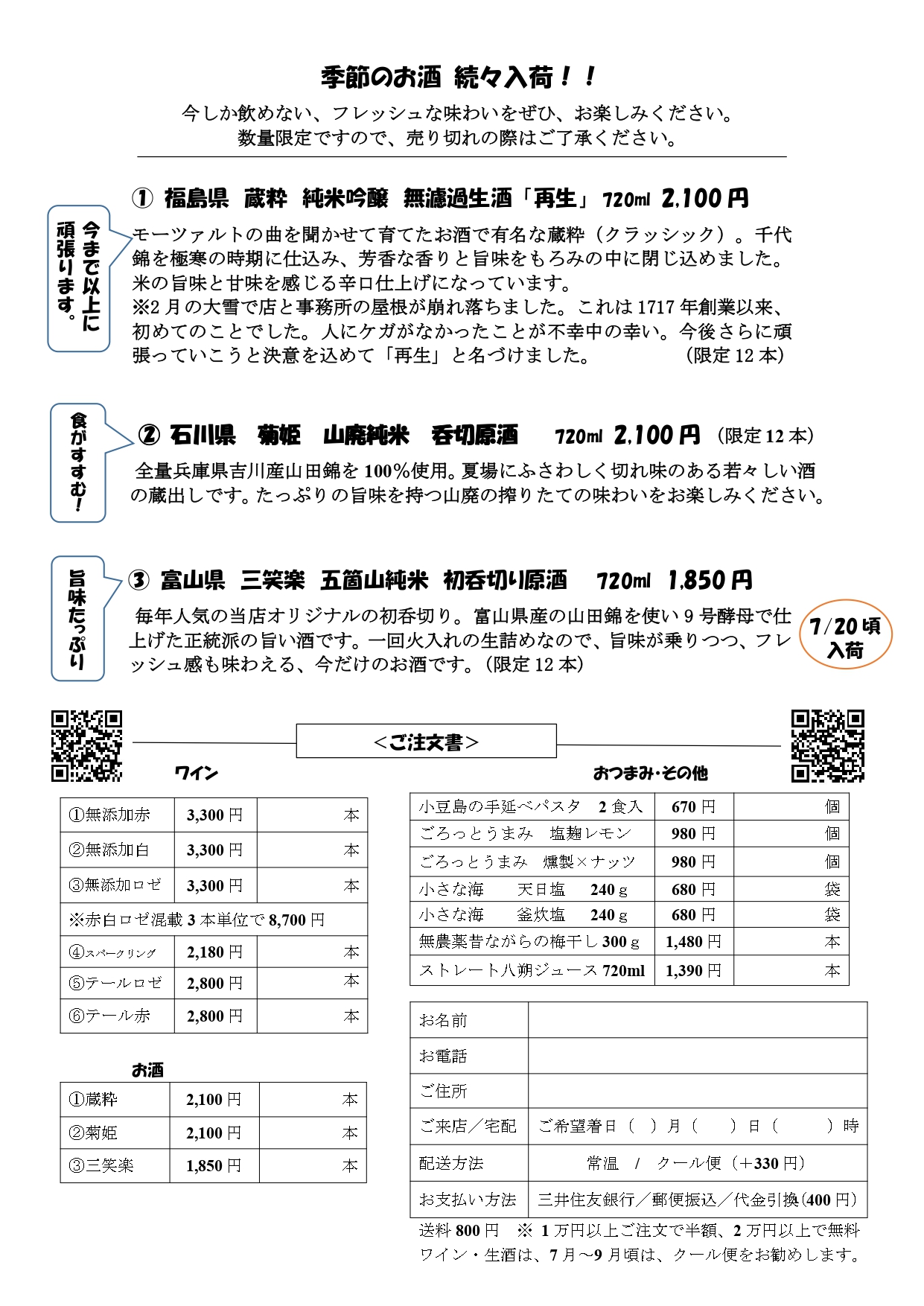 ご注文お待ちしています。