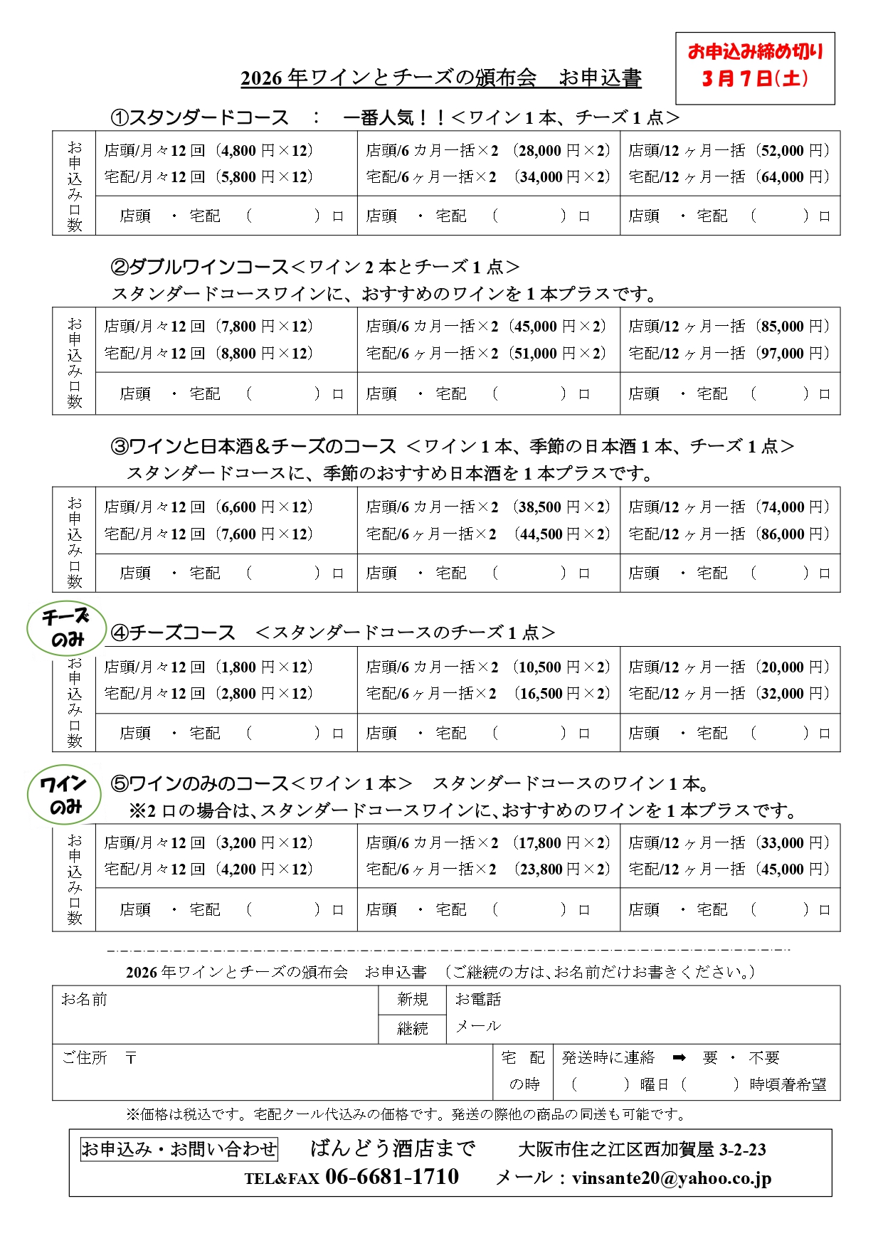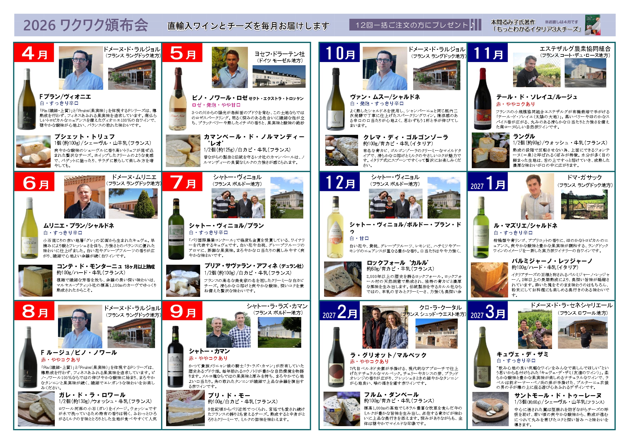 2026年ワインとチーズの頒布会♪ 4月スタート